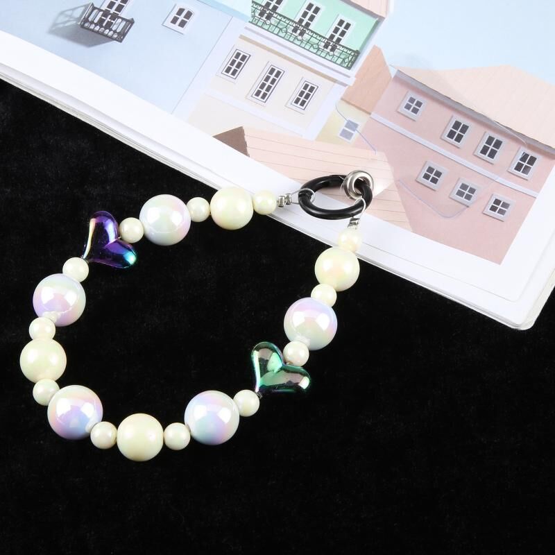 Laser Pearl Heart Bead Chain Anti-lost Short Lanyard(White)