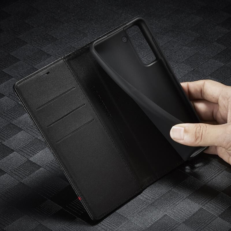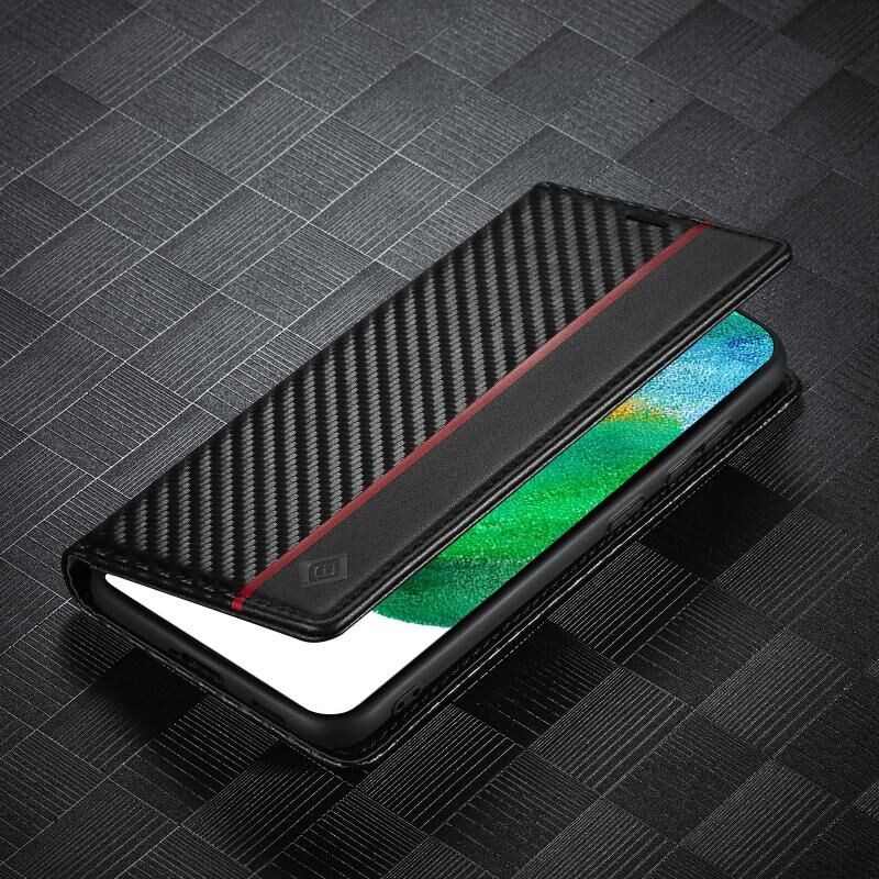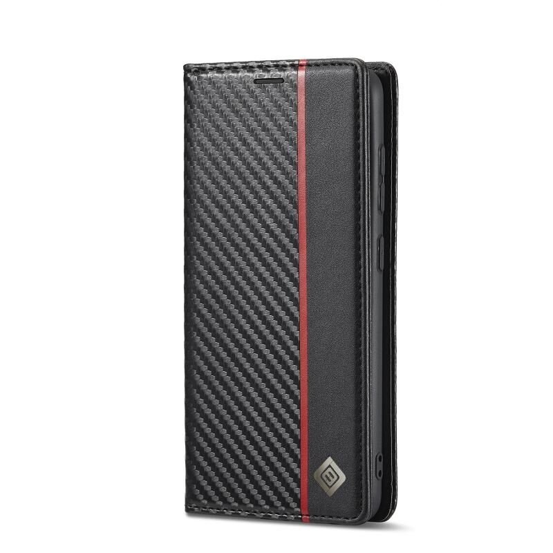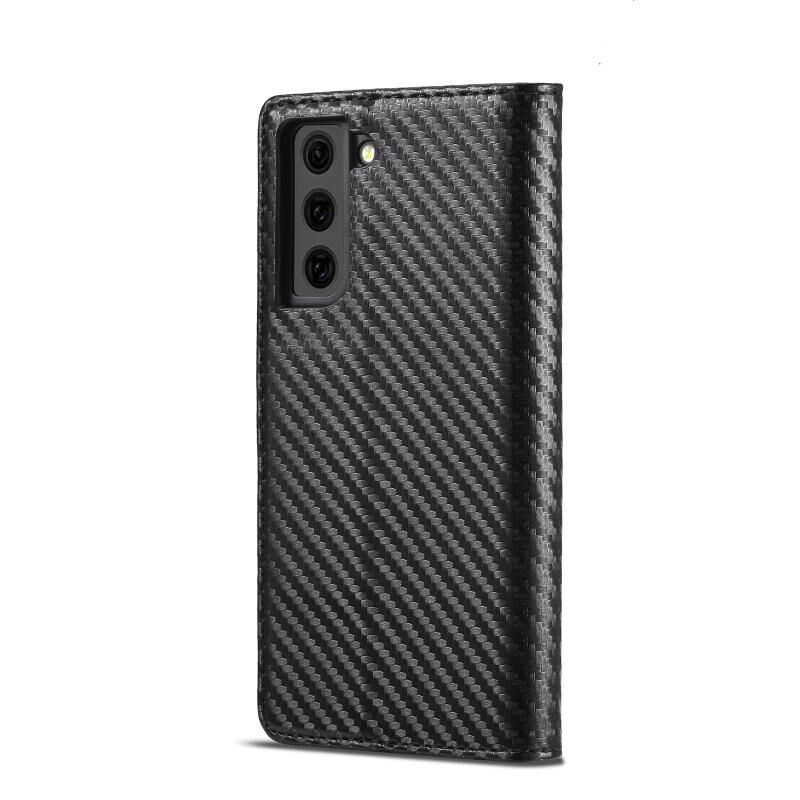 LC.IMEEKE Carbon Fiber PU + TPU Horizontal Flip Leather Case with Holder & Card Slot & Wallet For Samsung Galaxy S21+ 5G(Vertical Black) (LC.IMEEKE)