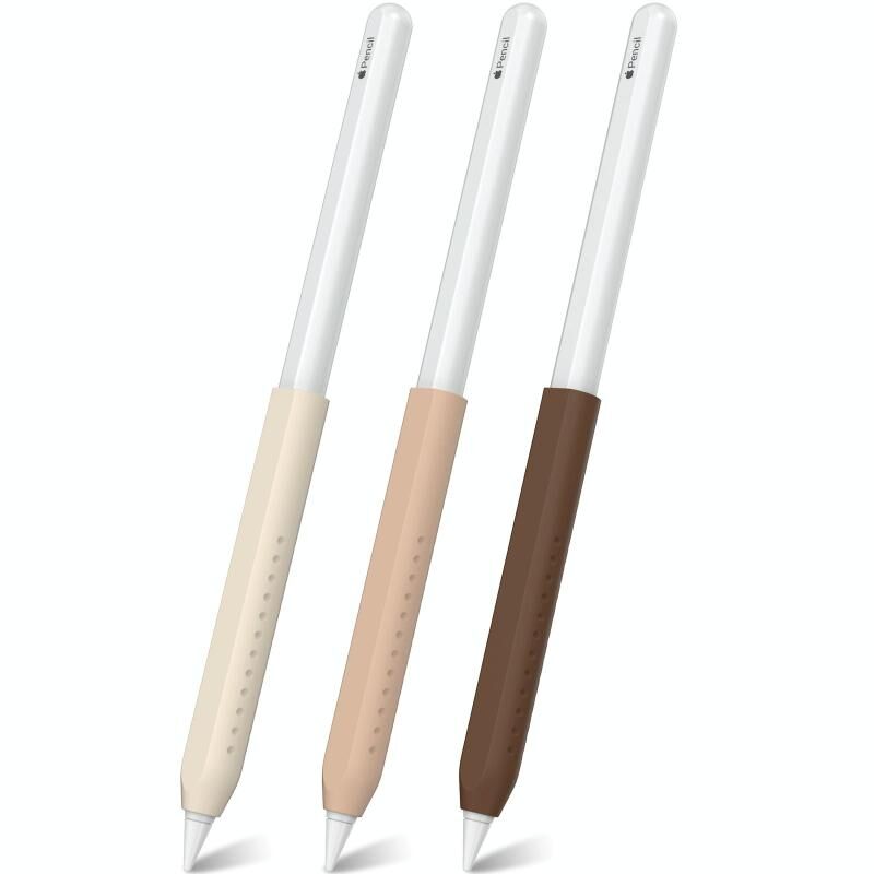 LC182-X 3pcs / Set Stylus Silicone Protective Grip Cover for Apple Pencil 2 / Pro / USB-C(Beige+Milk Tea+Brown)