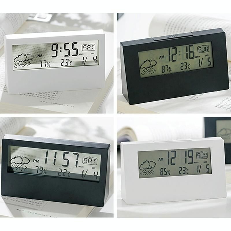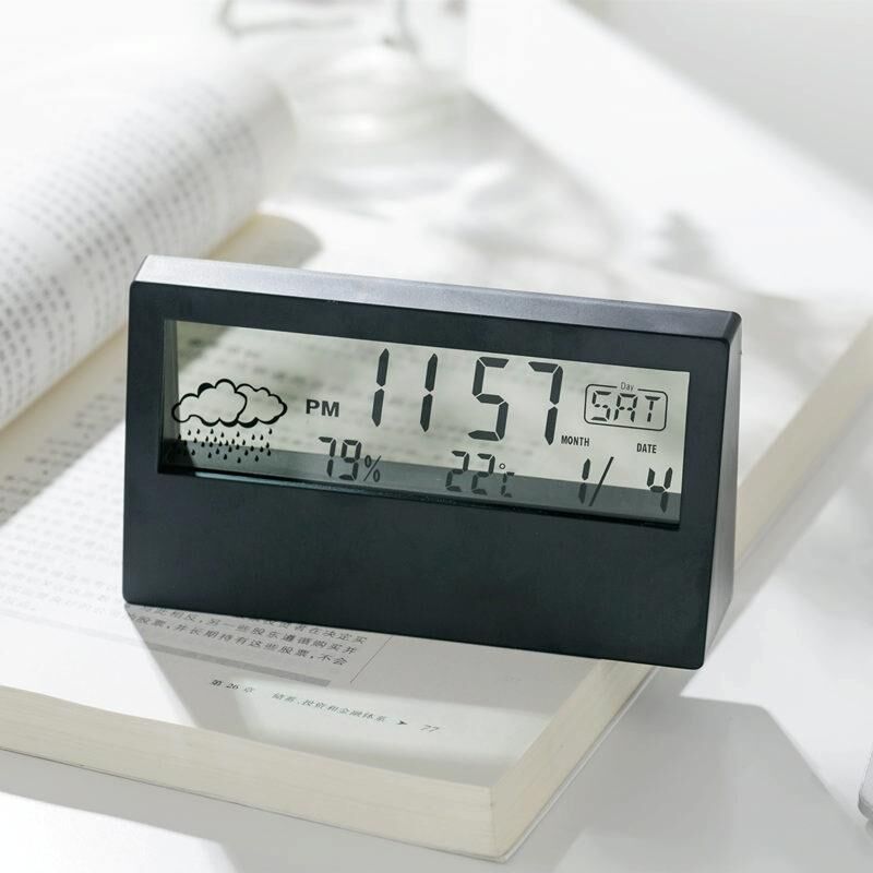 Ηλεκτρονικό ρολόι γραφείου LCD Ψηφιακή οθόνη πολυλειτουργικό ρολόι συναγερμού θερμοκρασίας και υγρασίας, μοντέλο: Μαύρο διαφανές