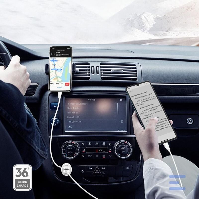 LDNIO C511Q 36W QC 3.0 Phone Fast Charger Dual-USB Ports Smart Car Charger with USB-C/Type-C Cable (LDNIO)
