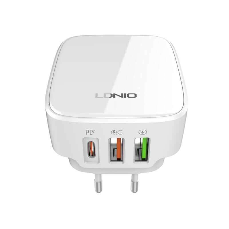 Φορτιστής LDNIO Q334 32W Type-C + Διπλής θύρας USB με καλώδιο δεδομένων 8 ακίδων 1m, Τύπος βύσματος: EU Plug (Μαύρο) (LDNIO)