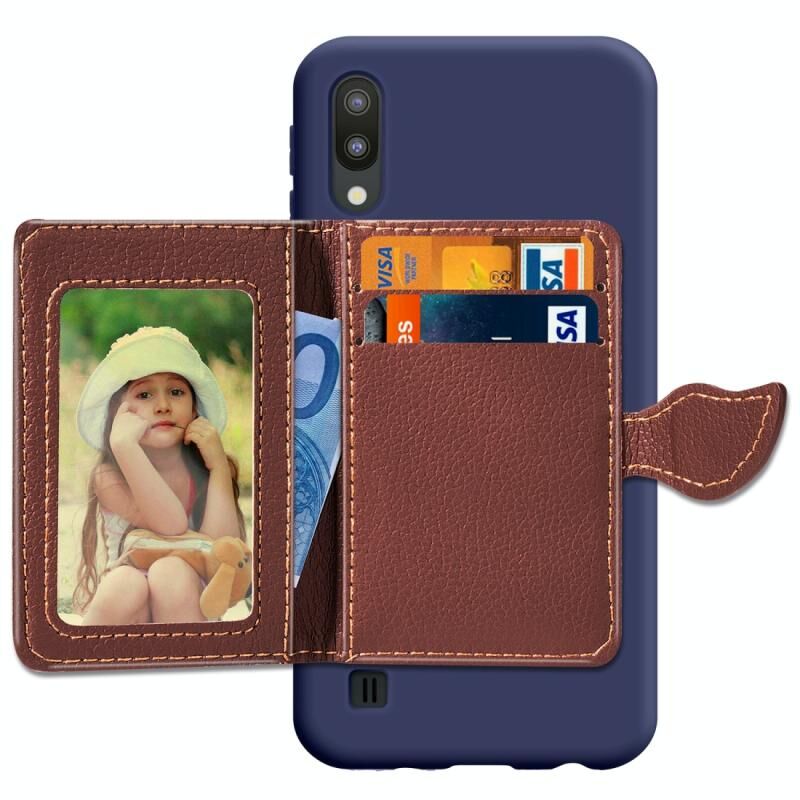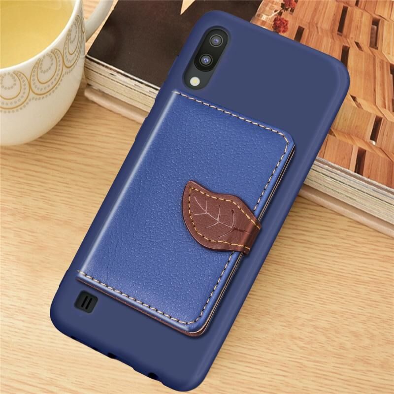 Leaf Buckle Litchi Texture Card Holder PU + TPU υπόθεση για το Galaxy M10, με υποδοχή κάρτας & πορτοφόλι & κάτοχος & πλαίσιο φωτογραφιών (μπλε)