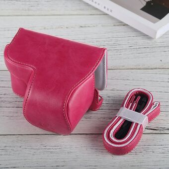 Full Body Camera PU Leather Case Bag with Strap for Sony A6000 / A6300 / Nex 6(Magenta)