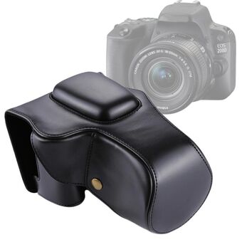 Full Body Camera PU Leather Case Bag for Canon EOS 200D (18-55mm Lens)(Black)