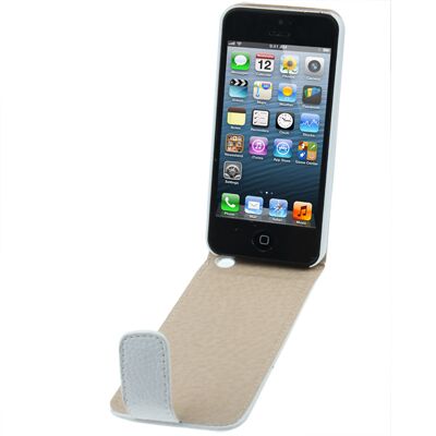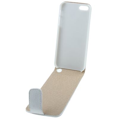 Λευκή δερμάτινη θήκη Vertical Flip με υφή λίτσι και τρύπα ακουστικών για iPhone 5 & 5s & SE & SE.