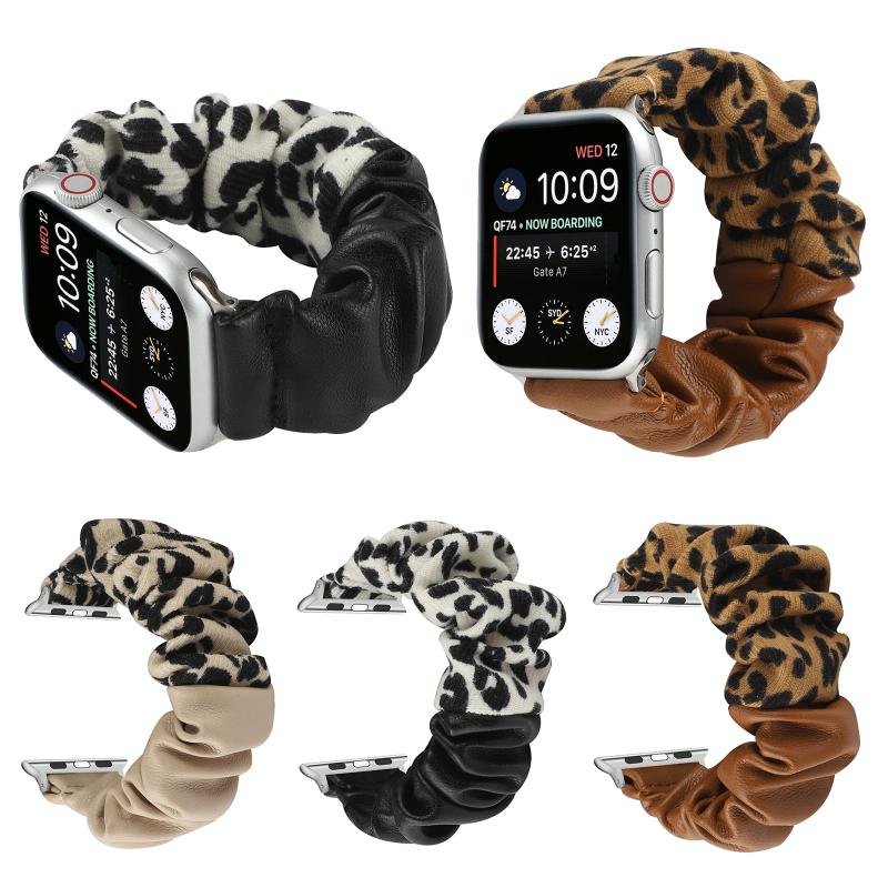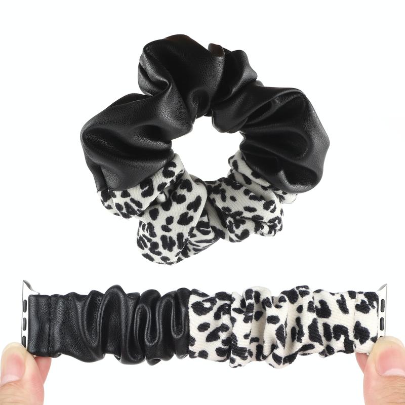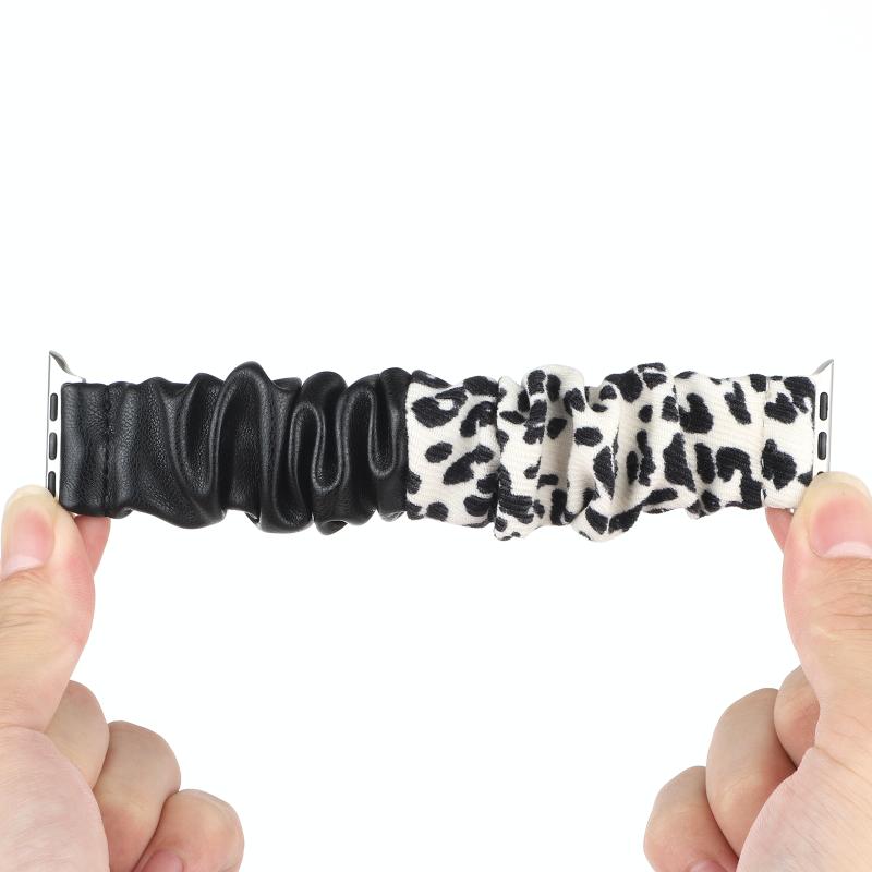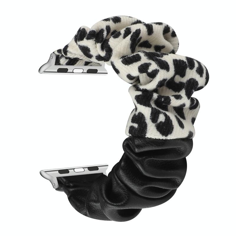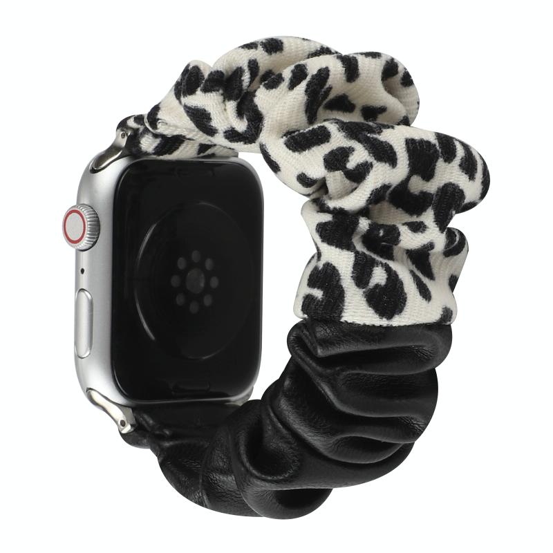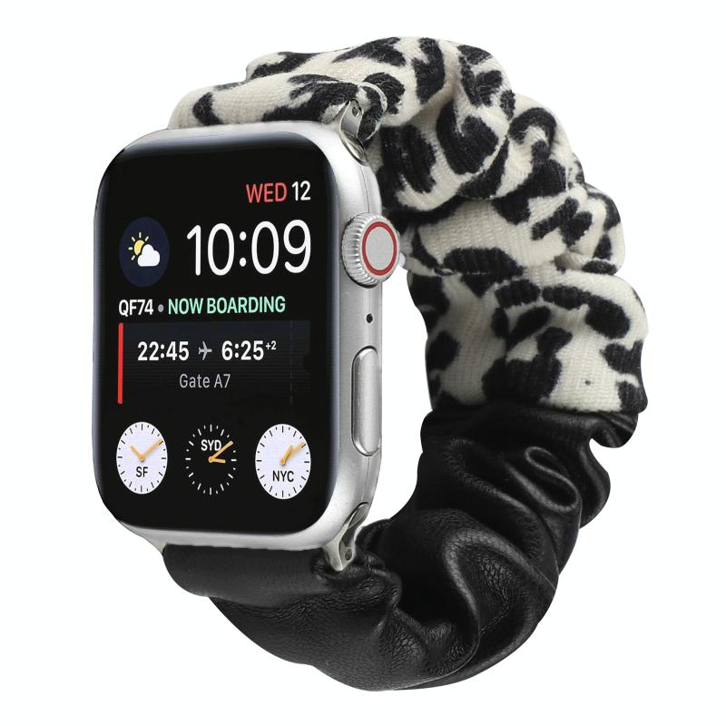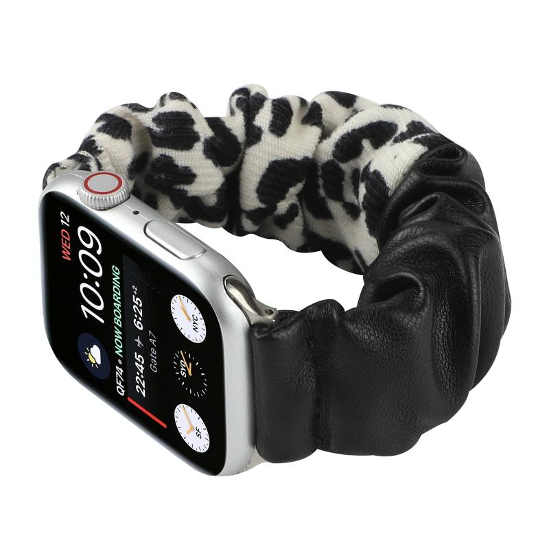 Λουρί ρολογιού από δέρμα με ραφές σε μοτίβο λεοπάρδαλης για Series 7 45mm / 6 & SE & 5 & 4 44mm / 3 & 2 & 1 42mm (Μαύρο)