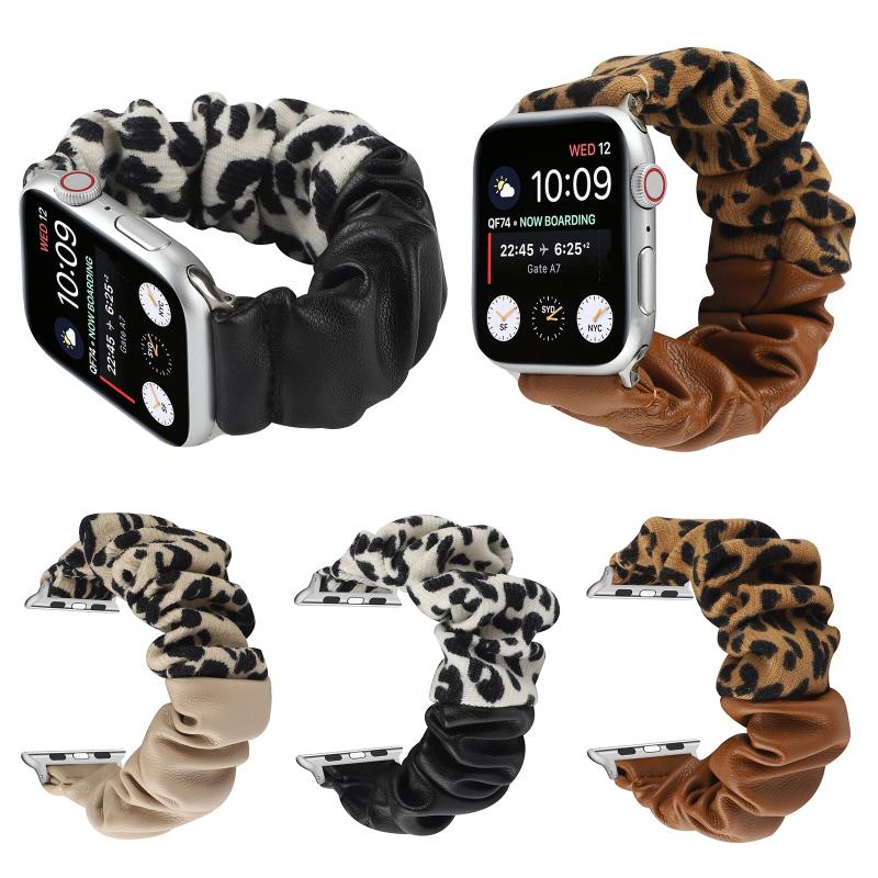 Leather Leopard Pattern Stitching Watch Band For Series 7 45mm / 6 & SE & 5 & 4 44mm / 3 & 2 & 1 42mm(Khaki)
