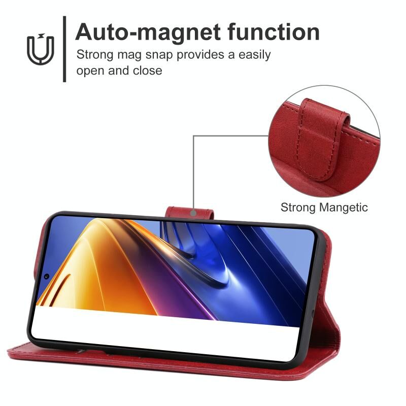 Θήκη τηλεφώνου από δέρμα για Xiaomi Poco F4 GT (Κόκκινο)