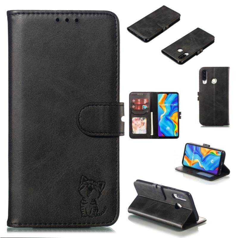 Δερμάτινη προστατευτική θήκη για το Huawei P30 Lite (Μαύρο)
