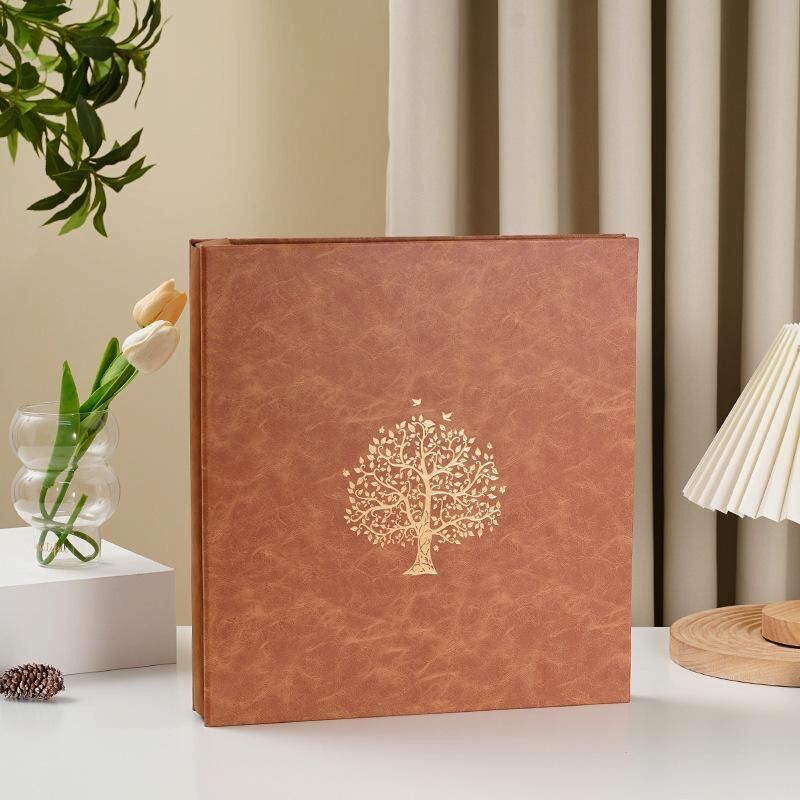 Δερμάτινο αυτοκόλλητο άλμπουμ φωτογραφιών τσέπης με πλαστικοποίηση Άλμπουμ στούντιο Άλμπουμ DIY μεγάλης χωρητικότητας αρχεία, Spec: 40 σελίδες μαύρο εσωτερικό (κίτρινο δέντρο)