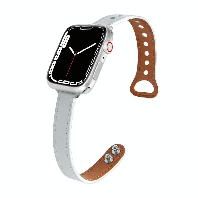 Leather Strap Watch Band For Apple Watch Series 9&8&7 41mm / SE 3&SE 2&6&SE&5&4 40mm / 3&2&1 38mm(White)