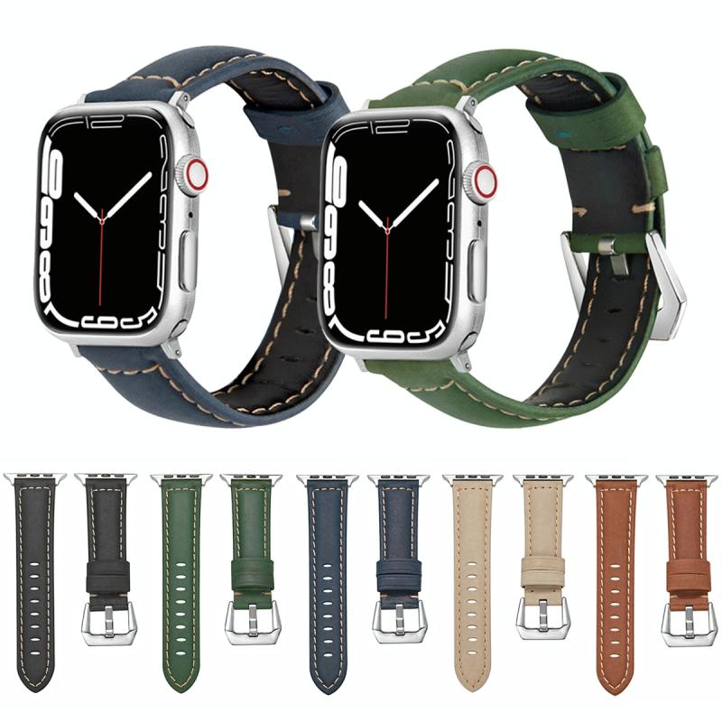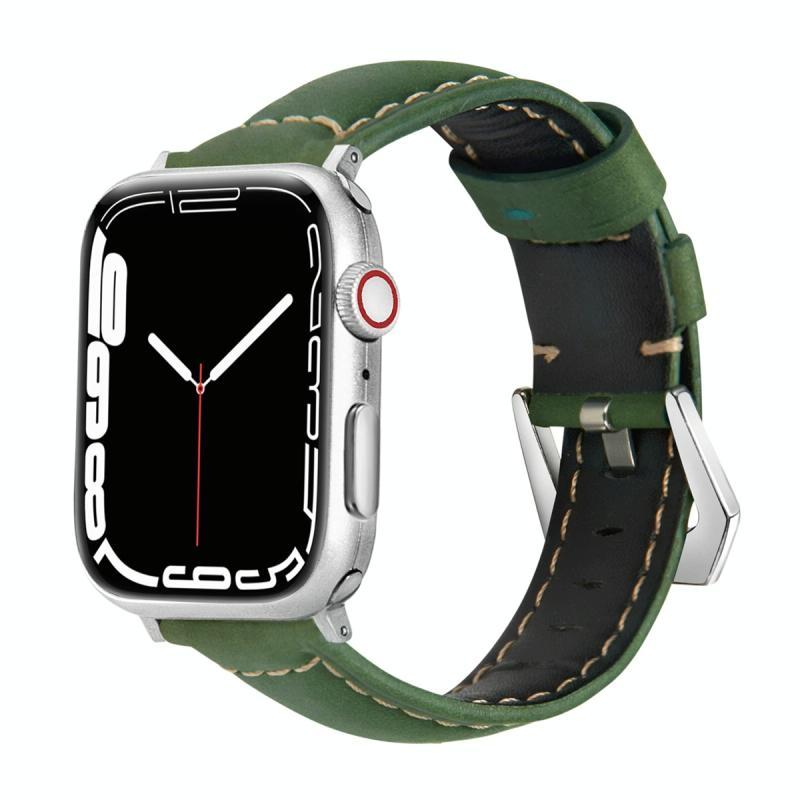 Leather Strap Watch Band For Apple Watch Ultra 49mm&Watch Ultra 2 49mm / Series 9&8&7 45mm / SE 3&SE 2&6&SE&5&4 44mm / 3&2&1 42mm(Green)