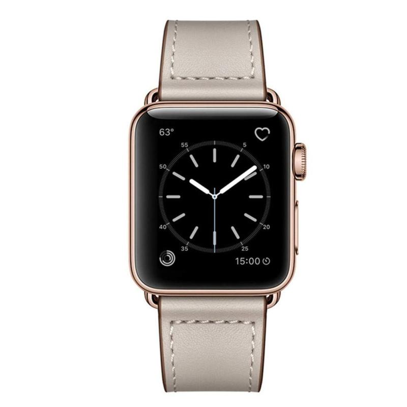 Λουρί Ρολογιού από Δέρμα για Apple Watch Ultra 49mm & Watch Ultra 2 49mm / Series 9 & 8 & 7 45mm / SE 3 & SE 2 & 6 & SE & 5 & 4 44mm / 3 & 2 & 1 42mm (Ιβουάρ + Χρυσαφί Σαμπάνια)