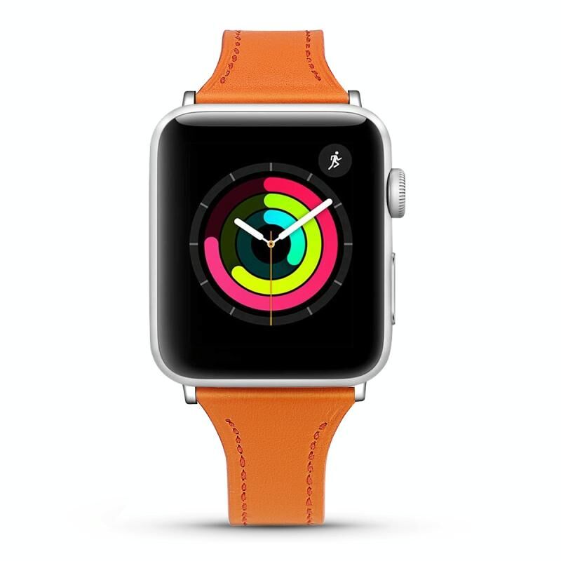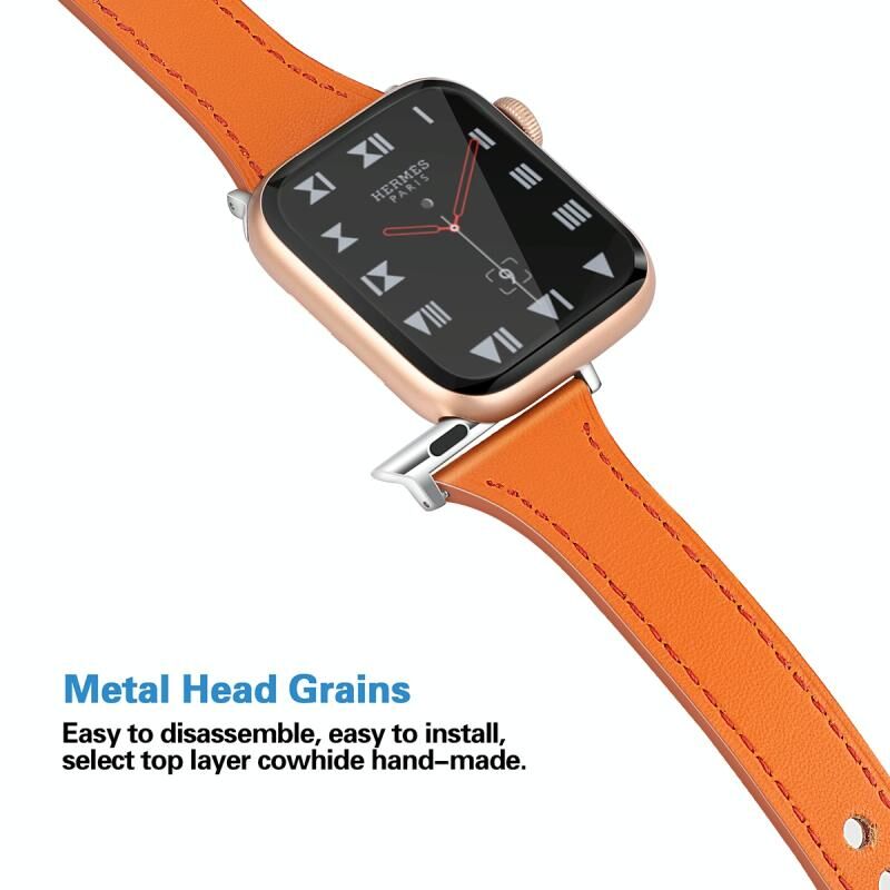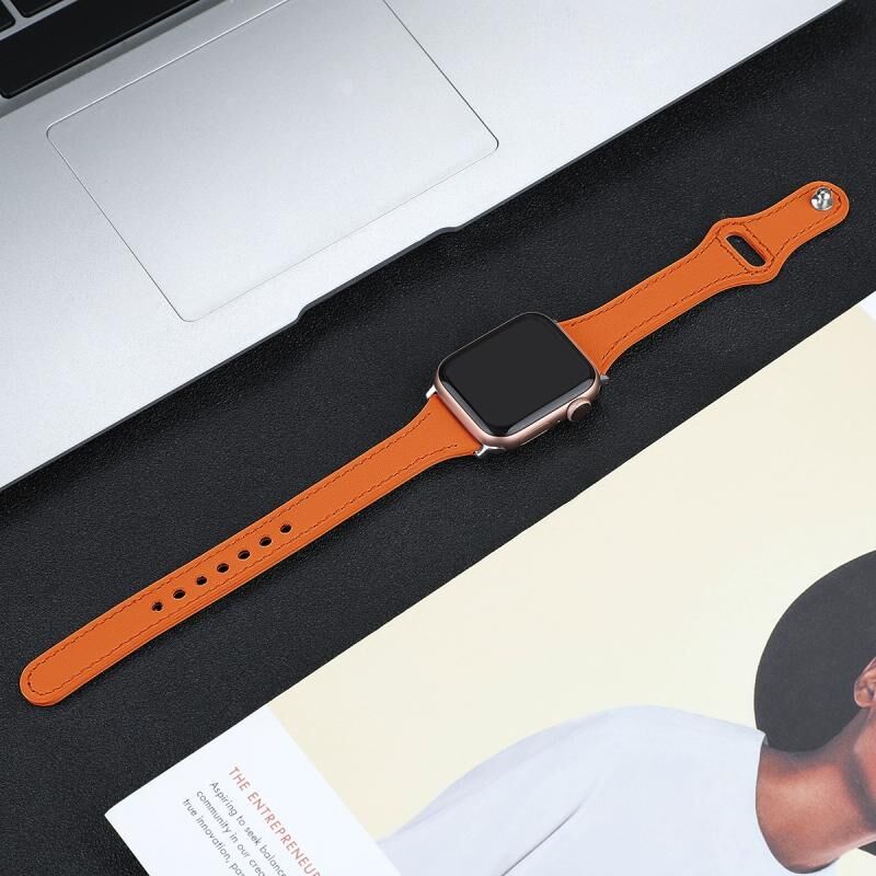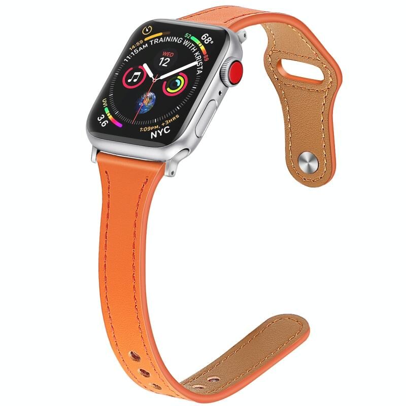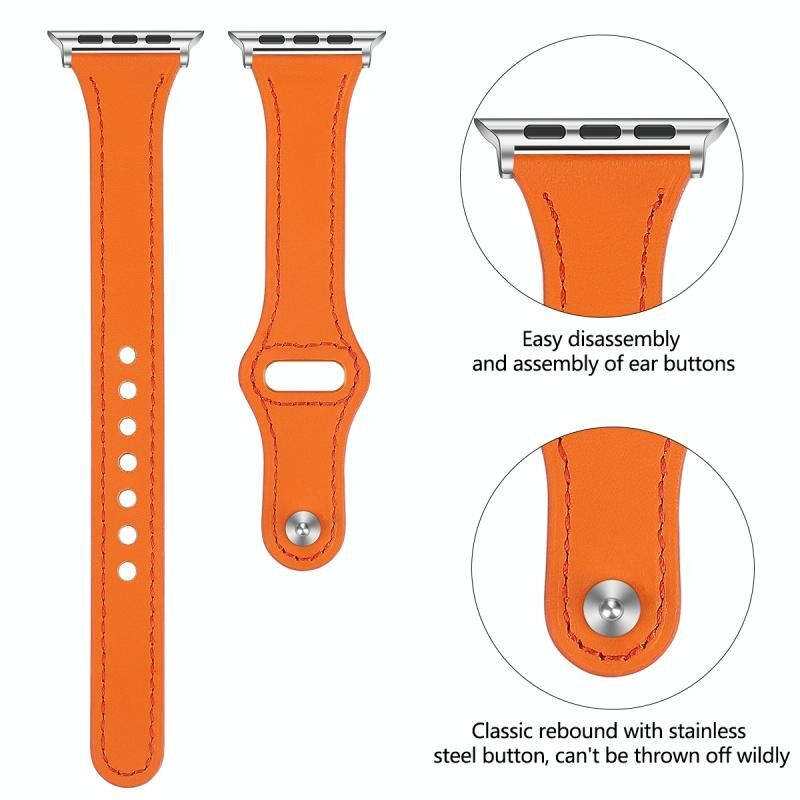 Λουρί ρολογιού από δέρμα με ατσάλινο κουμπί για Apple Watch Series 9&8&7 41mm / SE 3&SE 2&6&SE&5&4 40mm / 3&2&1 38mm (Πορτοκαλί)