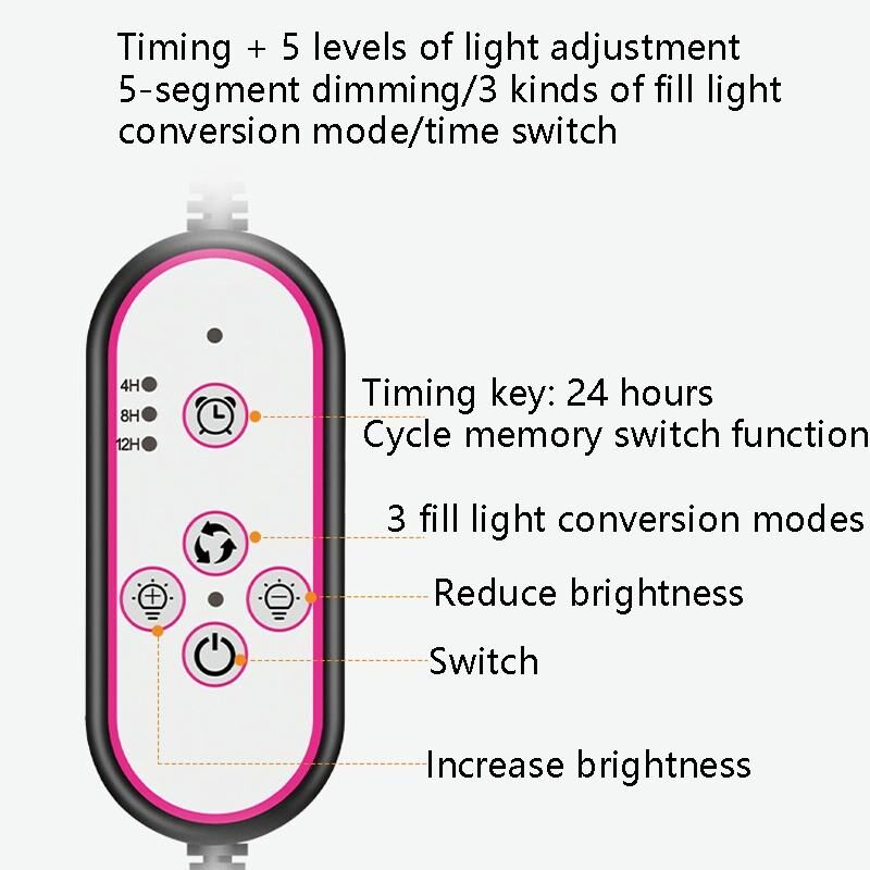 4. Αριθμός LED: 24 κόκκινα+48 φυσικού χρώματος σε μία κεφαλή, 48 κόκκινα+96 φυσικού χρώματος σε δύο κεφαλές, 72 κόκκινα+144 φυσικού χρώματος σε τρεις κεφαλές, 96 κόκκινα+192 φυσικού χρώματος σε τέσσερις κεφαλές,