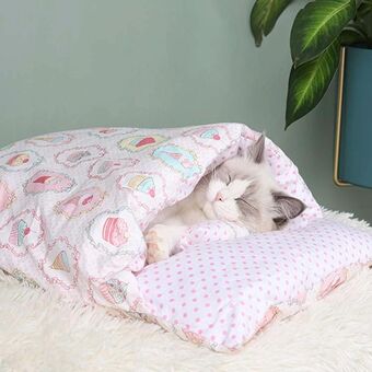 Closed Removable and Washable Cat Litter Sleeping Bag Winter Warm Dog Kennel, Size: S(Pink Ice Cream)