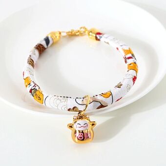 Lucky Cat Copper Bell Adjustable Pet Cat Dog Collar Necklace, Size:S 20-25cm(White Shiba Inu)