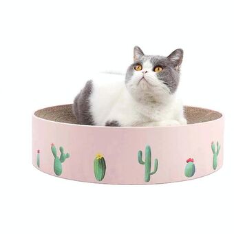 Round Corrugated Cat Scratcher Claw Sharpener Toy Bed, Colour: Pink 32x32x6cm
