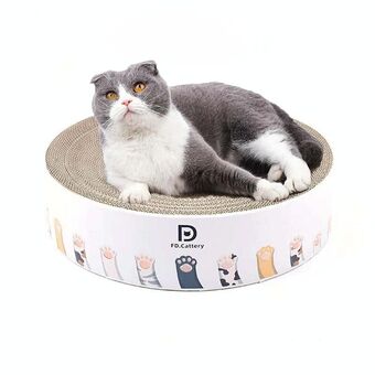 Round Corrugated Cat Scratcher Claw Sharpener Toy Bed, Colour: Paw Print 32x32x6cm