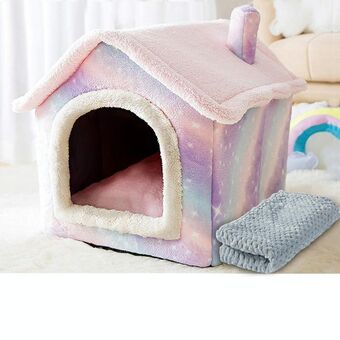 House Type Universal Removable and Washable Pet Dog Cat Bed Pet Supplies, Size:S(Pink Starry Sky + Blanket)