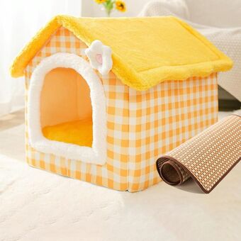 House Type Universal Removable and Washable Pet Dog Cat Bed Pet Supplies, Size:S(Yellow Flower)