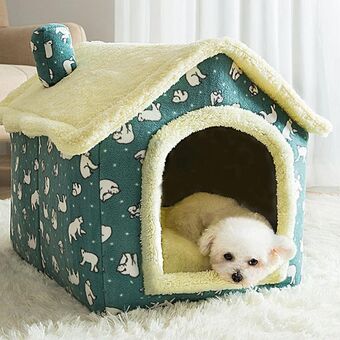 House Type Universal Removable and Washable Pet Dog Cat Bed Pet Supplies, Size:S(Green Bear House)