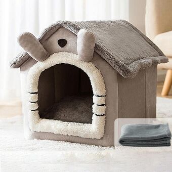 House Type Universal Removable and Washable Pet Dog Cat Bed Pet Supplies, Size:M(Gray Cat + Blanket)