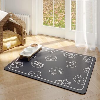 Χαλί Δαπέδου για Κατοικίδια Ανθεκτικό στα Δαγκώματα και Απορροφητικό, Στρώμα Σίτισης, Αντιολισθητικό, Παρατηρητήριο Ύπνου για Σκύλους, Στυλ: Παράδεισος Γάτας Σκούρο Γκρι (45x60cm)