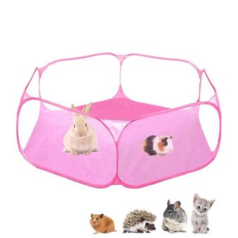 Portable Small Animal Game Fence Folding Outdoor Interior Pet Tent(Pink Opp Bag)