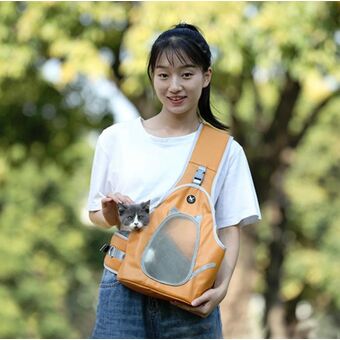 TAILUP Pets Carry Out Shoulder Bag Convenient Foldable Leather Chest Bag, Specification: M(Orange Brown)