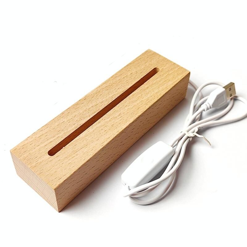LED Light Solid Wood Luminous Base for Resin Art Acrylic Glass Lights Rectangular 18cm(White Light)