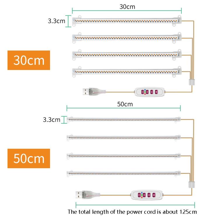 3. Luminous flux: 82.6lm for 30cm pink light, 169.2lm for 30cm sunlight, 22.7lm for 30cm red and blue light, 88lm for 50cm pink light, 177lm for 50cm sunlight, 21lm for 50cm red and blue light
