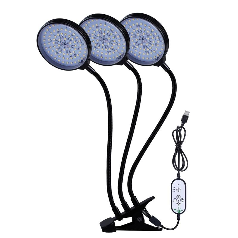 LED Plant Growth Lamp USB Remote Control Clip Waterproof Full Spectral Natural White Seedling Planting Light, Power: 45W Three Head