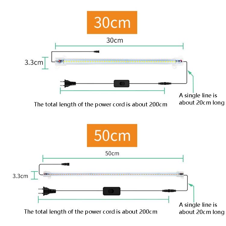 7. Dimensions: the lamp tube is about 30/50x3.3 cm, the total length of the power cord is about 200 cm, and the length of a single line is about 20 cm