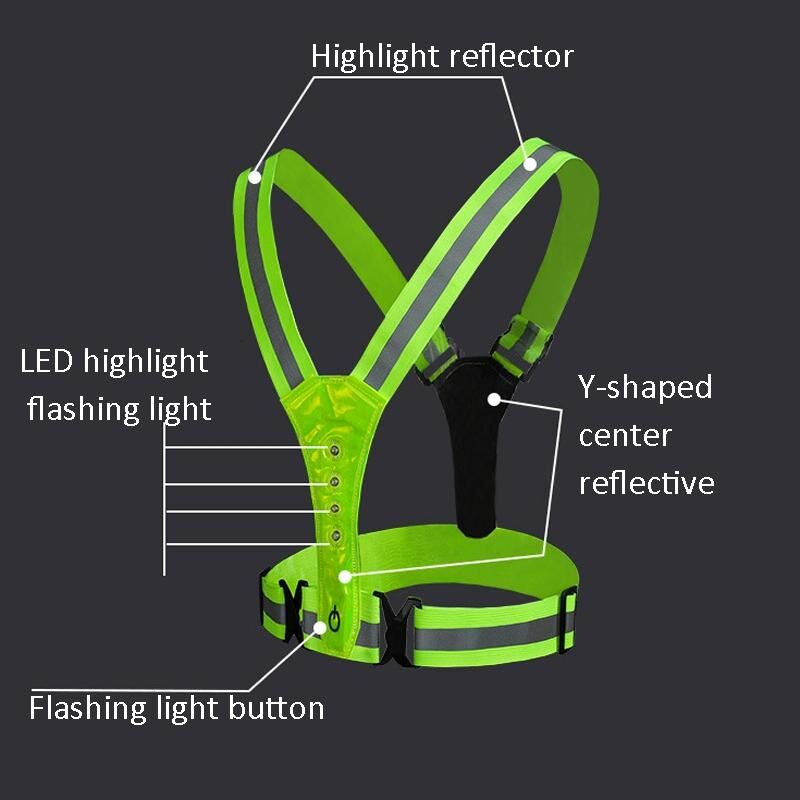 LED Reflective Vest High Stretch Outdoor Reflective Vest Traffic Safety Reflective Clothing( Green)