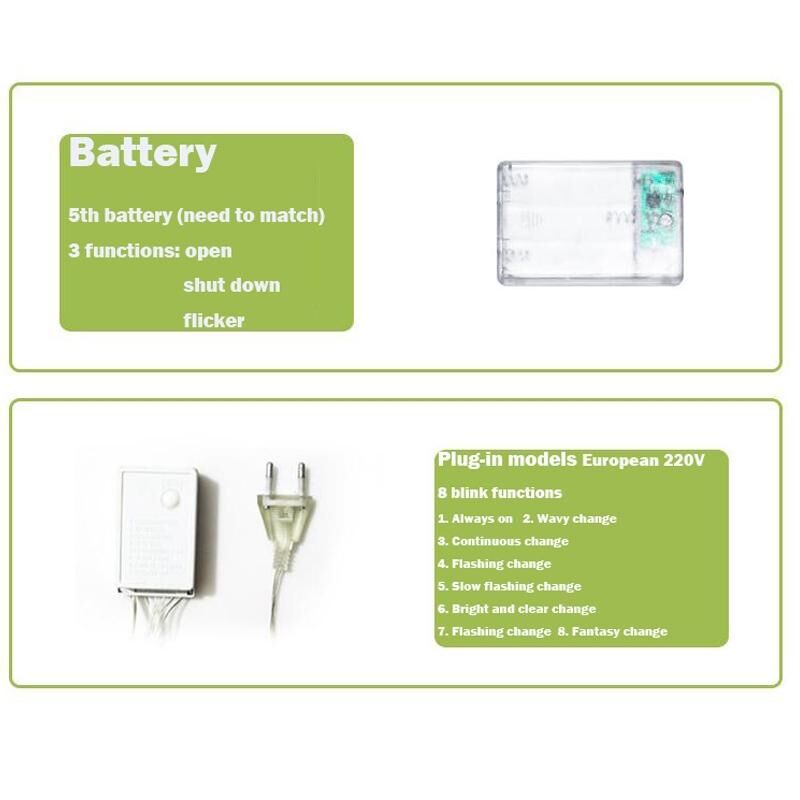 8. Τροφοδοσία: Τροφοδοσία μπαταρίας : 3 x AA μπαταρία (20 LEDs: 2 x AA μπαταρία) (ΔΕΝ περιλαμβάνονται) / EU plug 220 V