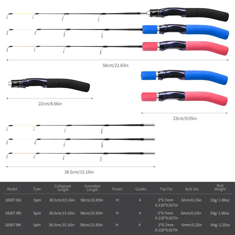 LEO 28307 58cm Curved Handle Flat Tip Ice Fishing Rods Knuckle Solid Fishing Rods(Blue) (LEO)