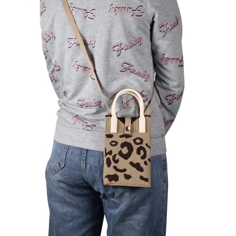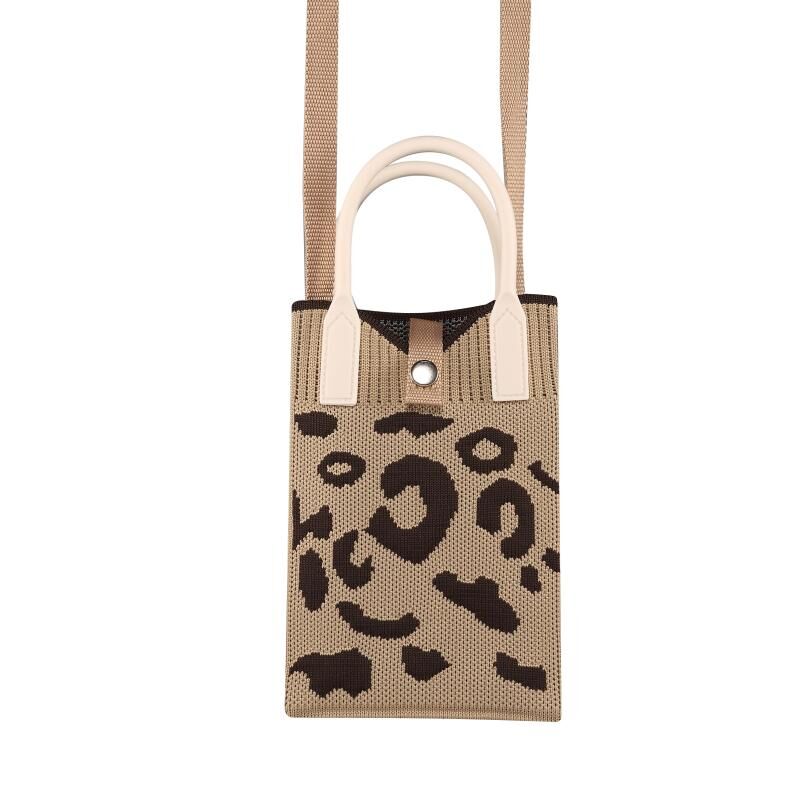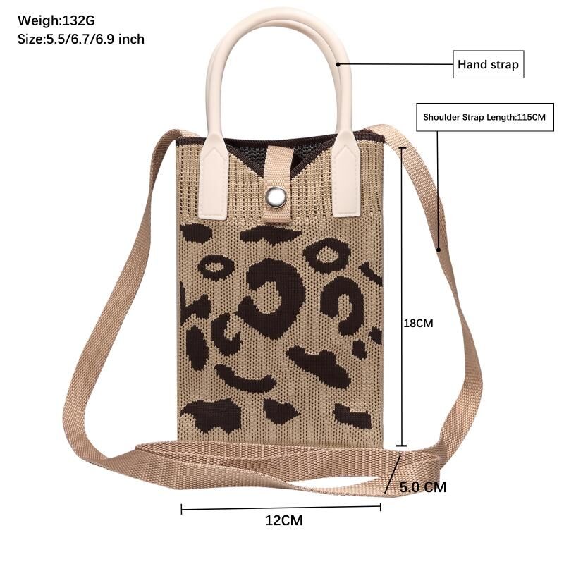Τσάντα κινητού τηλεφώνου τύπου crossbody, πλεκτή με σχέδιο λεοπάρδαλης, για τηλέφωνα έως 6,9 ίντσες (Λευκό)