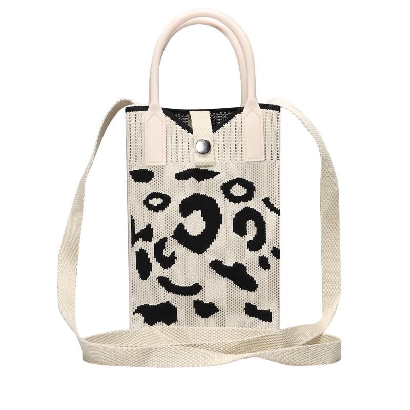 Τσάντα κινητού τηλεφώνου τύπου crossbody, πλεκτή με σχέδιο λεοπάρδαλης, για τηλέφωνα έως 6,9 ίντσες (Λευκό)