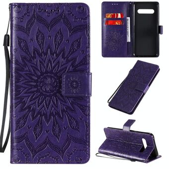 Για LG V60 ThinQ 5G ανάγλυφο ηλιοτρόπιο μοτίβο οριζόντια Flip PU δέρμα υπόθεση με κάτοχο & υποδοχές για κάρτες & πορτοφόλι & Lanyard (μωβ)