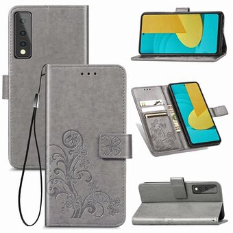 Για το LG Stylo 7 Four-leaf Clasp ανάγλυφη αγκράφα Κινητό τηλέφωνο προστασία δερμάτινη θήκη με κορδόνι & υποδοχή για κάρτες & πορτοφόλι & βραχίονα λειτουργία (γκρι)