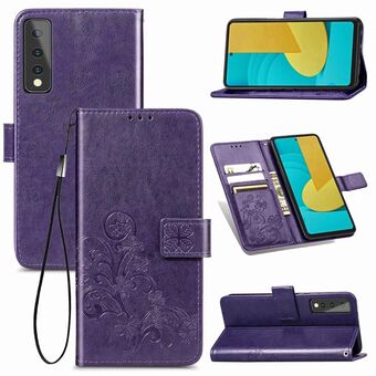 Για LG Stylo 7 Four-φύλλο κούμπωμα ανάγλυφο αγκράφα κινητό τηλέφωνο προστασία δερμάτινη θήκη με κορδόνι & υποδοχή για κάρτες & πορτοφόλι & βραχίονα λειτουργία (μωβ)