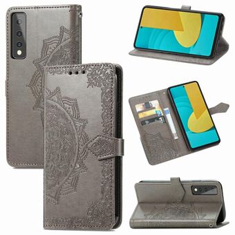 Για LG Stylo 7 Mandala λουλούδι ανάγλυφο οριζόντια Flip δερμάτινη θήκη με στήριγμα / υποδοχή για κάρτες / πορτοφόλι / κορδόνι (γκρι)