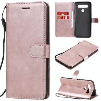 Για LG K41S / K51S Αμιγές χρώμα οριζόντια Flip προστατευτική δερμάτινη θήκη με θήκη & υποδοχές για κάρτες & πορτοφόλι & πλαίσιο φωτογραφιών & κορδόνι (ροζ χρυσό)