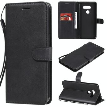 Για το LG K50S Αμιγές χρώμα οριζόντια Flip προστατευτική δερμάτινη θήκη με θήκη & υποδοχές για κάρτες & πορτοφόλι & πλαίσιο φωτογραφιών & κορδόνι (Μαύρο)