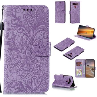 For LG K41S / K51S Lace Flower Horizontal Flip Leather Case with Holder & Card Slots & Wallet & Photo Frame(Purple)