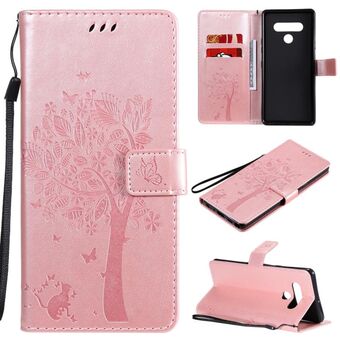 For LG Stylo 6 Tree & Cat Embossed Pattern Horizontal Flip Leather Case with Holder & Card Slots & Wallet & Lanyard(Rose Gold)