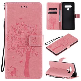For LG Stylo 6 Tree & Cat Embossed Pattern Horizontal Flip Leather Case with Holder & Card Slots & Wallet & Lanyard(Pink)