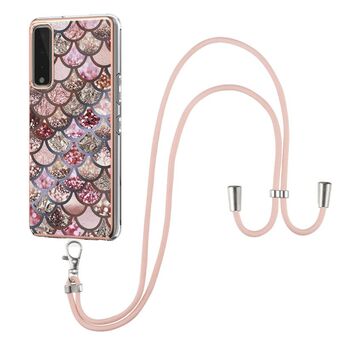 For LG Stylo 7 5G Electroplating Pattern IMD TPU Shockproof Case with Neck Lanyard(Colorful Scales)